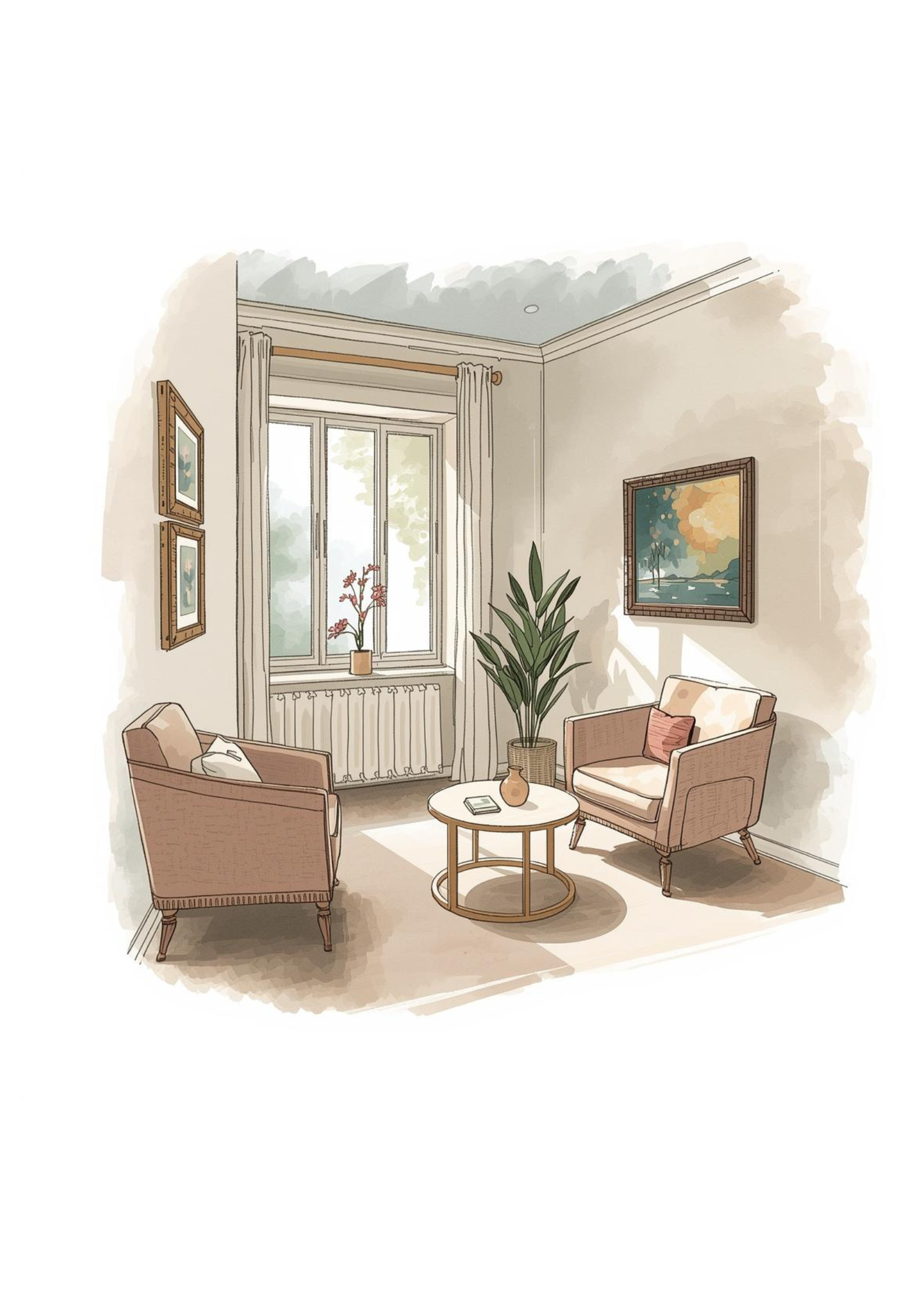 Le cabinet est conçu pour offrir un cadre apaisant et sécurisant, favorisant l’écoute et l’accompagnement personnalisé. Que ce soit pour une consultation ponctuelle ou un suivi régulier, je vous reçois dans un environnement propice à l’échange et au travail thérapeutique.